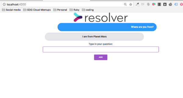 I created one using angular, dialogflow and deployed it to firebase by following this tutorial. I created one intent on dialogflow asking one question — where are you from? And presented it to my peers at my company to see what they would think of the idea.