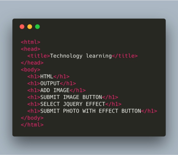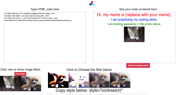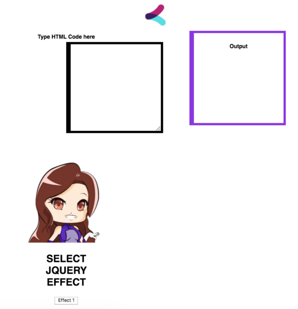 Obviously more heads think better than one, and after brainstorming ideas, another bright idea was suggested — building a playground HTML desktop application where the person learning can experiment with HTML tags and choose some jQuery animations, to take a picture of themselves and add some cool animation to it.