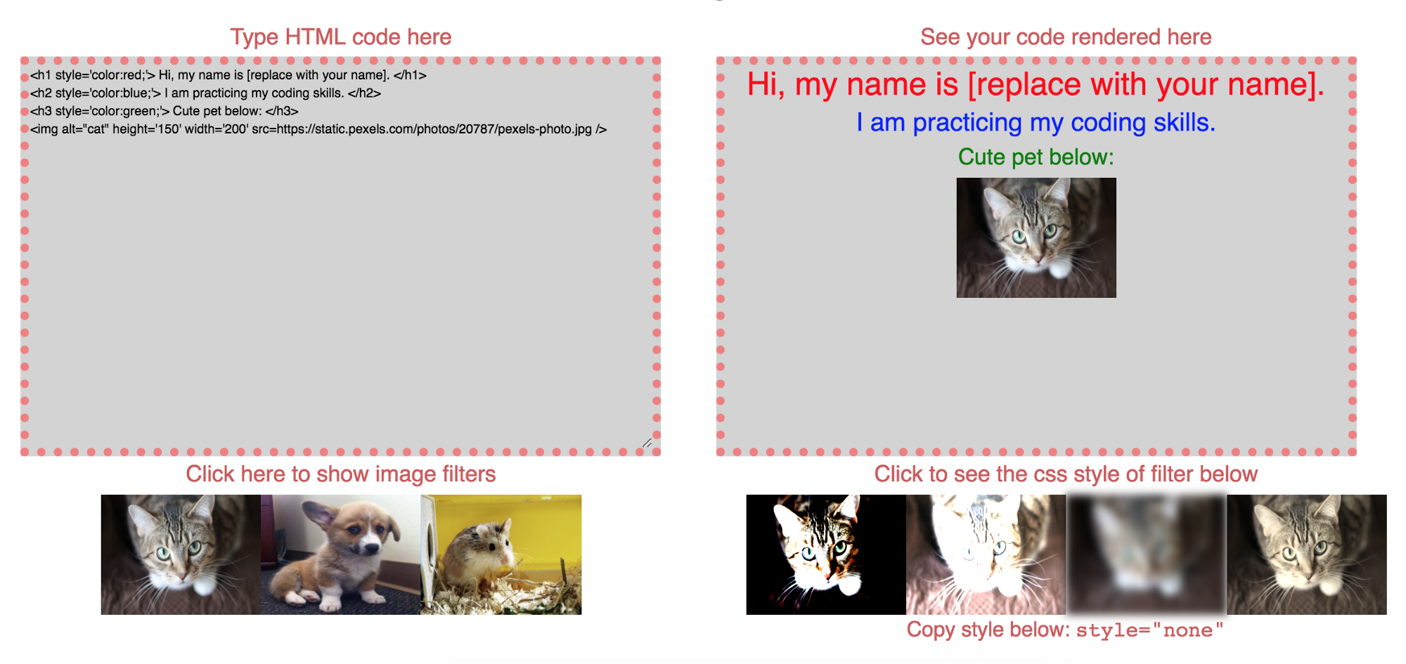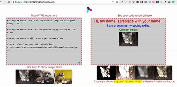 🛑I have three days to finish this project, starting to get a bit tense. So big change of plans, for Saturday I will simplify this game by adding images to the existing project instead of a webcam, that we can apply filters to them. I then added an image of a dog and a cat and welcome the ladies to write some code and choose their favourite pet.