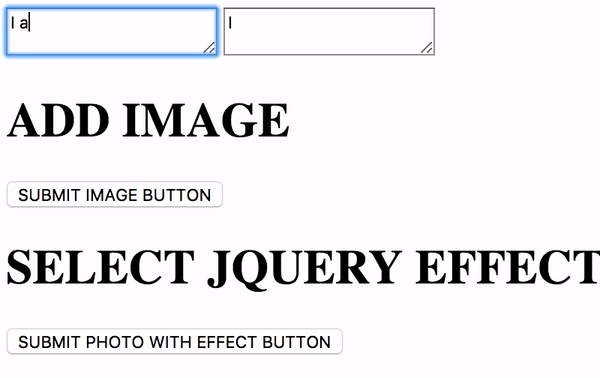 Ok now it is time to add some jQuery animate, I then add one image to be animated and try one jQuery effect. I commented the other buttons and added a test image as of now just to see the effects taking place.