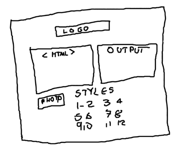 wireframe index.html page Ok cool, now that we have outlined everything we are going to need and possible technologies that might change along the way let’s try and do the easier parts that are creating the place to write the code and output it as it would on an html page and changing what are buttons to be buttons.